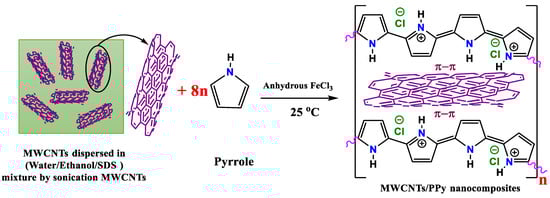 The preparation scheme of MWCNTs/polypyrrole (PPy) nanocomposites is displayed in Figure 1.