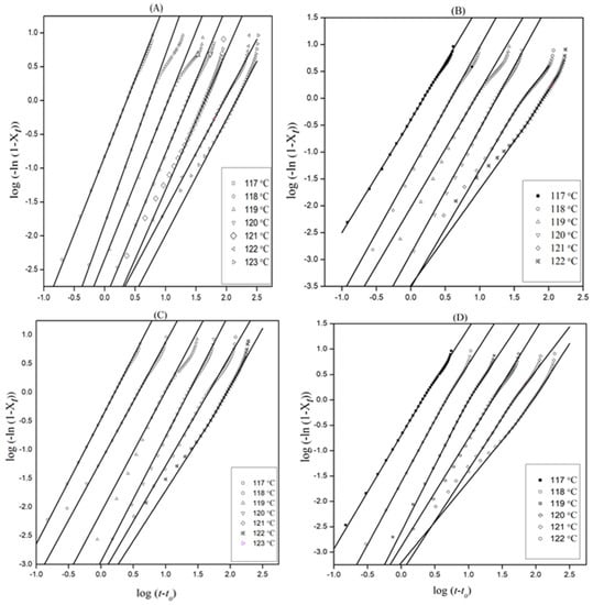 - Avrami, M. Kinetics of phase change. II Transformation-time relations for random distribution of nuclei. J. Chem. Phys. 1940, 8, 212–224. [Google Scholar] [CrossRef]