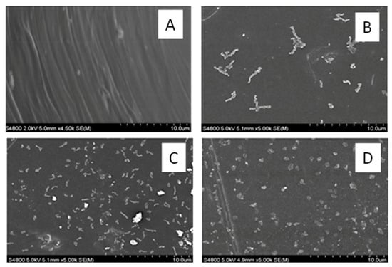 - Jeon, K.; Lumata, L.; Tokumoto, T.; Steven, E.; Brooks, J.; Alamo, R.G. Low electrical conductivity threshold and crystalline morphology of single-walled carbon nanotubes—High density polyethylene nanocomposites characterized by SEM, Raman spectroscopy and AFM. Polymer 2007, 48, 4751–4764. [Google Scholar] [CrossRef]