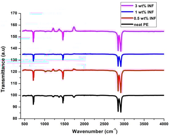 | 3 wt% INF/PE | 117 | 1.7 | 1.7 | 2.19 | 0.02 | 0.484 | −0.0002 | 0.9999 |