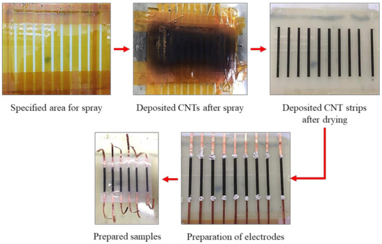 Fabrication process of sprayed CNT layer-embedded sensors.