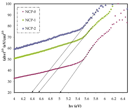 (αhυ)2/3 v photon energy for NCP-0 and composite samples.