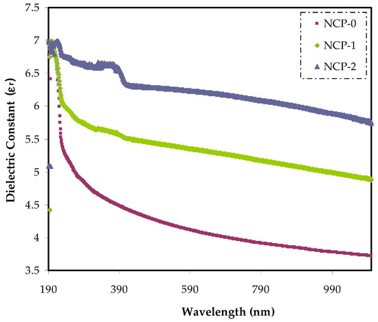Dielectric constant vs. wavelength for NCP-0 and composite films.