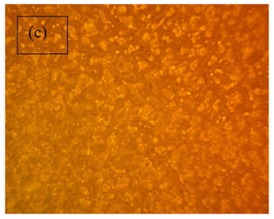 Optical microscopy images for (a) Pure PEO, (b) NCP-1, and (c) NCP-2 composite films.