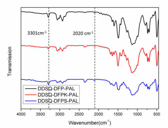 DDSQ-DFPXs can be dissolved in most common organic solvents (e.g., DMF, DMSO, NMP, or DMAC) at room temperature, while the crosslinked DDSQ-DFPXs-PAL materials are insoluble in most organic solvents, even upon heating.