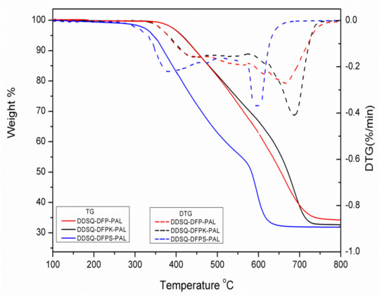 TGA curves of DDSQ-DFPKs-PAL after curing.