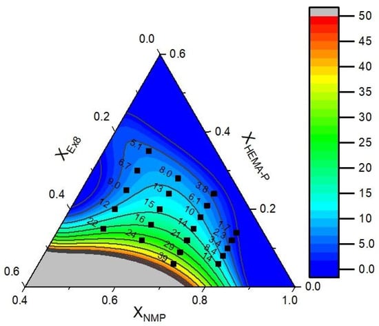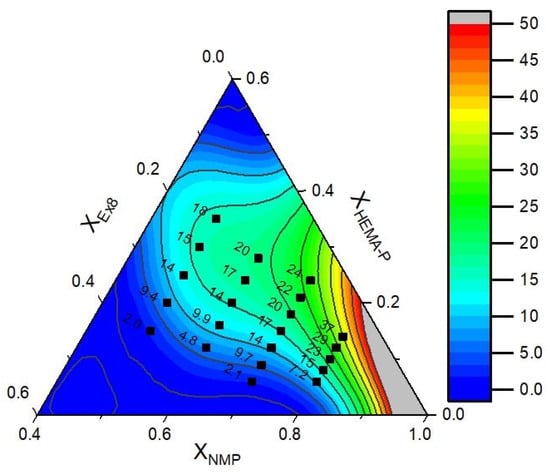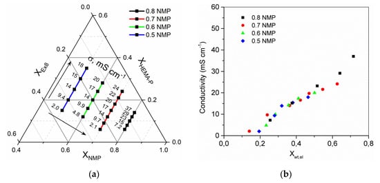 | XNMP = 0.66 XHEMA-P = 0.17 XEx8 = 0.17 | σ = 15.5 ± 1.3 mS·cm−1 | σ = 15.7 ± 1.1 mS·cm−1 |