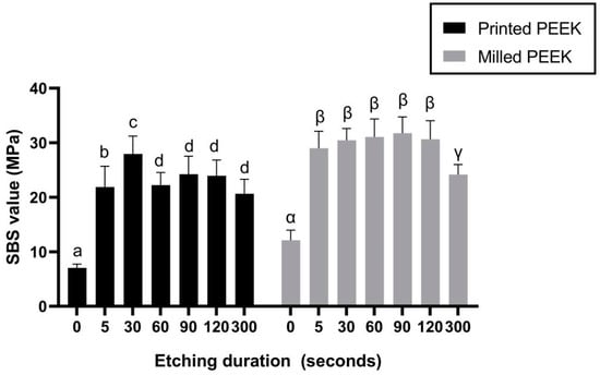 | Etching Duration (Seconds) | Printed PEEK | Milled PEEK | ||||||