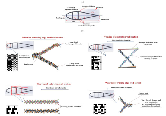 (a) Airfoil geometrical attributes; (b) development of woven airfoil structure.