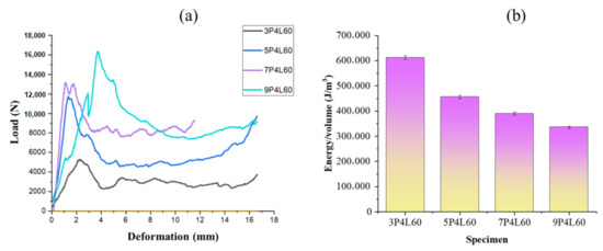 (a) Compressive load-deformation plots; and (b) energy/volume of honeycomb composites.