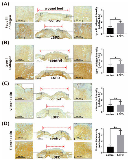 3.5. β-Sheet LSFD Promoted ECM Protein Expression in Rat Dermis