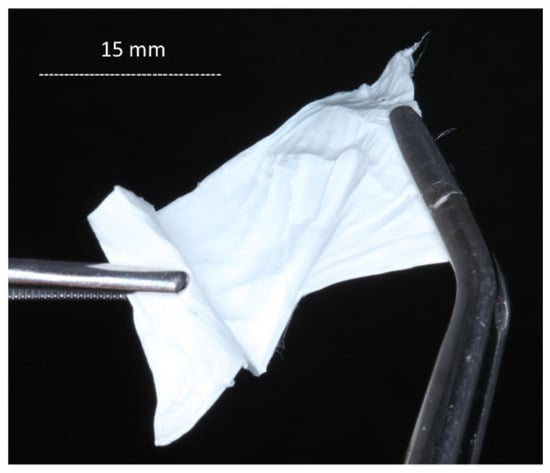 One of the most commonly used polymers in electrospinning is polyvinyl alcohol (PVA), which is a nontoxic, biocompatible, water-soluble polymer, usable as a carrier of additives and active agents. PVA is able to enhance new developing tissues. Although one of its biggest advantages is its water solubility (at 80 °C temperature), which enables fast and homogeneous scaffold preparation, this also becomes its biggest disadvantage, as the fiber net is prone to dissolving during dental application because, without cross-linkage, this fiber mesh dissolves immediately [15,16]. Therefore, the structure of PVA fiber was modified by the addition of a more hydrophobic biopolymer, such as chitosan. There are advantages of using natural polymers, such as their ability to mimic the natural chemical environment, primarily by imparting biocompatibility, but there are also some drawbacks, as their weak mechanical properties result in fragile materials in comparison to synthetic polymers [17]. Therefore, it is appropriate to use a biopolymer/synthetic polymer mixture for the preparation of fiber-like meshes.