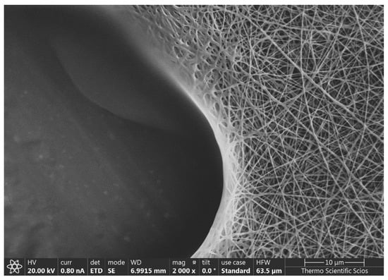 3.2. Investigation of the Structure of the Fiber Network via Scanning Electron Microscopy