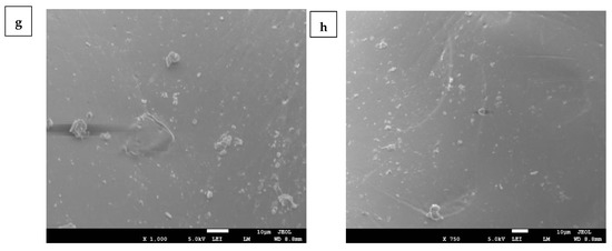 In this study, the sulfonation process of pure PES was carried out in the presence of concentrated sulfuric acid as well as chlorosulfonic acid at room temperature; herein, the sulfonated PES membrane is referred to as SPES, and it was synthesized successfully. The main purpose for such an important PES chemical treatment is to create a modified PES polymer surface with a negative charge as previously reported in the literature [5,27]. A variety of factors affect the DS of the modified PES, including polymer concentration, the used solvent, the time of the reaction, the temperature of the reaction, and the sulfonating agent strength. The method by Unnikrishnan et al. was followed to obtain our SPES. Hence, the expected DS was obtained with a maximum of 60% [5,27]. The chemical structures for both PES and its modified SPES are illustrated in Figure 1a.