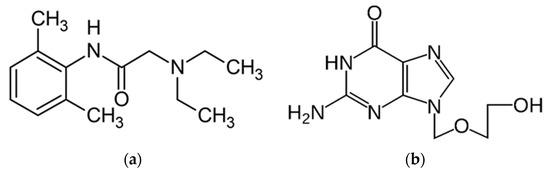 (a) Structure of Lidocaine L (SA); (b) structure of Aciclovir Av (SA).