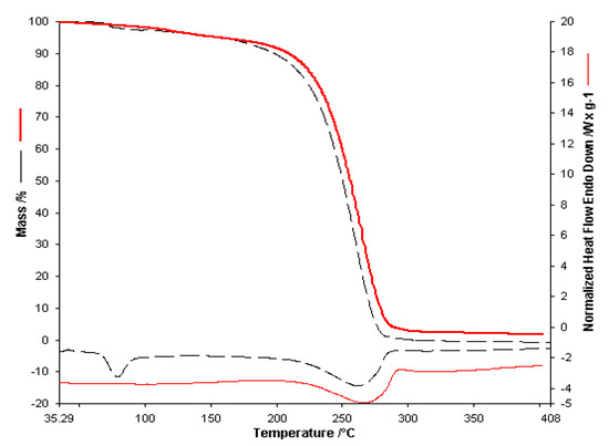 The thermoanalytical curves of L (SA)-- - - and L (D)___ obtained with a heating rate of 10 °C∙min−1.