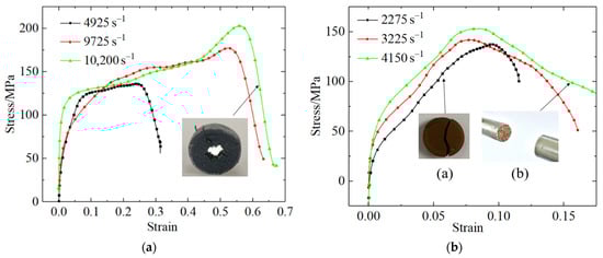 Dynamic stress–strain curves of (a) PLA; (b) PLA-Cu.