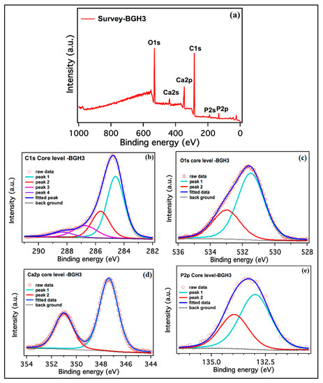| Phosphorous (P2p) | peak 1 | 133 ± 0.05 | 2P3/2 | O–P–O | 5.12 |
