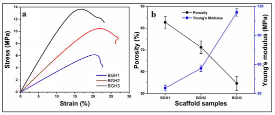 | Samples | Compression Strength (MPa) | Young’s Modulus (MPa) | Porosity (%) |