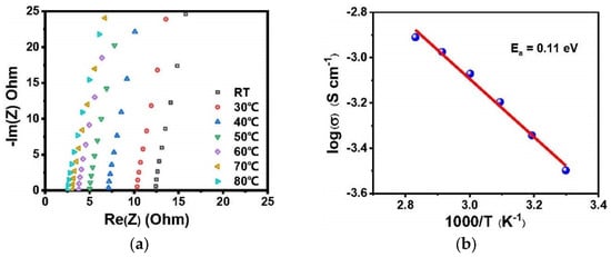 (a) EIS plots of PI–CPE at different temperatures; (b) Arrhenius plots of PI–CPE.