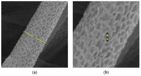 Measurement for (a) microtube diameter and (b) pore size.