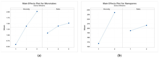 Main Effects Plot for Microtubes (a) and Nanopores (b).