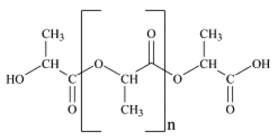 The chemical structure of the additives used and the repeating unit of the polyester, PLA, are shown in Figure 1 and Figure 2, respectively.
