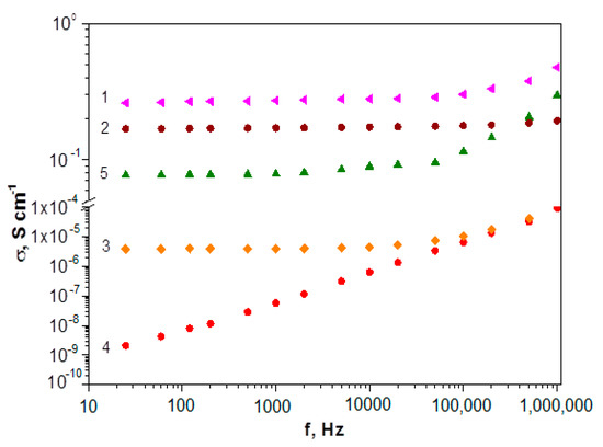 The conductivity σac was measured with 6367A precision LCR meter (Microtest Co., New Taipei City, Taiwan) in the frequency range 0.25 Hz–1.0 MHz.