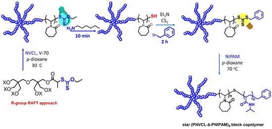 The synthesis of the linear and star PNVCL polymers was performed following the methodology reported previously [17,19]; see Table S1 in the Supplementary Materials.