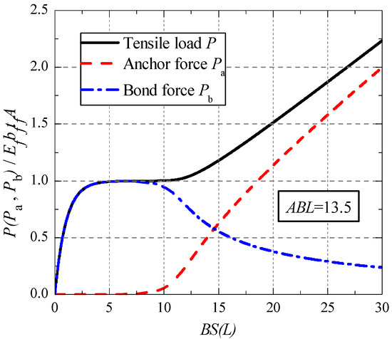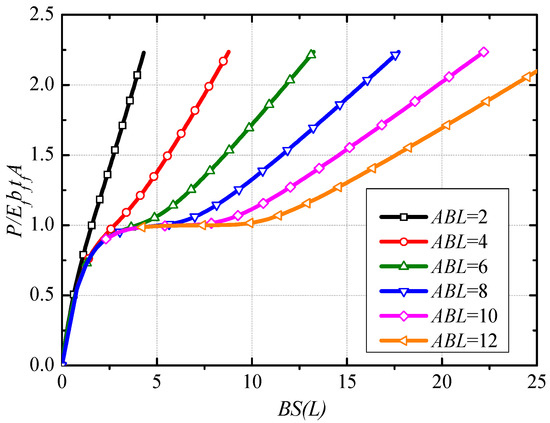 The load-slip response curve at the load end can be obtained by the simultaneous equations of Equations (19) and (20). Figure 2 shows the normalized load-slip curves with different normalized bond length ABL.