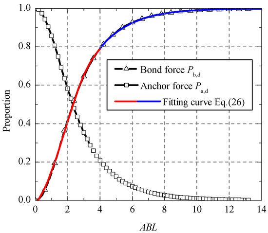 The corresponding anchor force Pa,d and bond force Pb,d can be obtained by introducing Equation (25) into Equations (22) and (23). Figure 4 shows the evolution curves of Pd, Pa,d and Pb,d along with the change of bond length.