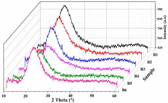 X–ray diffractograms of CMC–LiI–Gly-based SPEs.