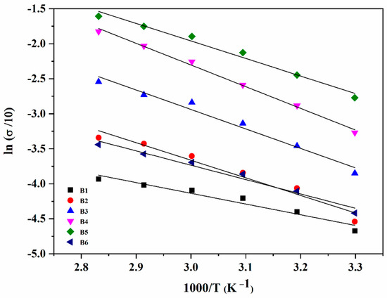 where σ0 is the pre-exponential factor, Ea is the activation energy of ionic conduction, k is the Boltzmann constant and T is the temperature in Kelvin.