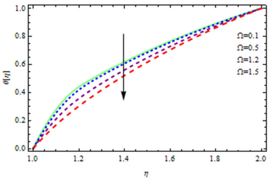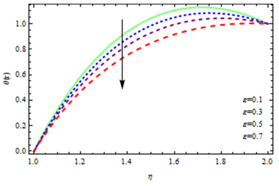 Reynolds’ model is utilized to explain temperature-dependent viscosity in this case. For Reynolds’ model, viscosity in dimensionless form is [17]: