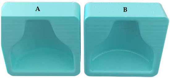 Comparison between the two molds (mold 1 (A), mold 2 (B)) after smoothing.