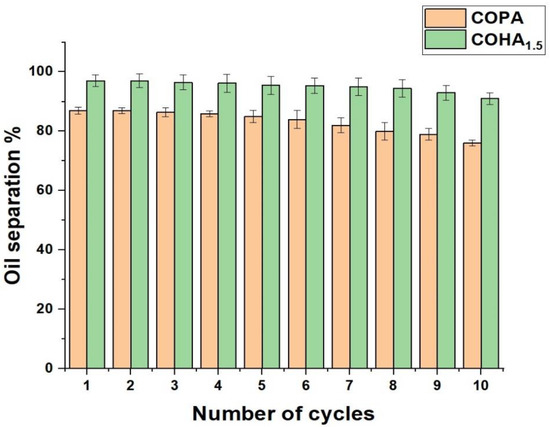 - The COHA1.5 showed an oil removal capacity of 97%, compared to the 87% by neat COPA. The water permeation capability of the COPA was 2087 L/m2 h, whereas COHA1.5 was found to be 6265 L/m2 h.