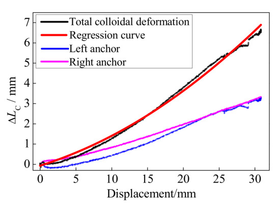 Based on the experimental results of the anchor colloidal deformations, the relationship between the anchor colloidal deformation, ΔLC, and the loading displacement, DL, is obtained based on the regression formula.