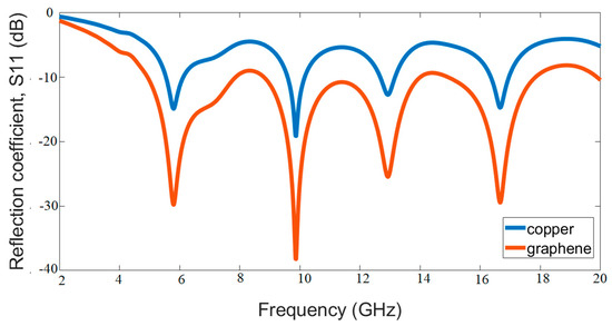 - Prasanna, R.; Banu, N.M. Effect of Copper and Graphene Material on Bow-tie Structured Antenna for 1.2 GHz Application. Radioelectron. Commun. Syst. 2019, 62, 189–194. [Google Scholar] [CrossRef]