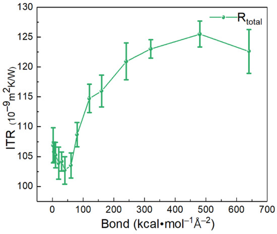 Interfacial thermal resistance () under various bond strengths of SAM.