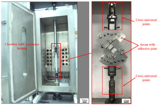 - Créac’Hcadec, R.; Sohier, L.; Cellard, C.; Gineste, B. A stress concentration-free bonded arcan tensile compression shear test specimen for the evaluation of adhesive mechanical response. Int. J. Adhes. Adhes. 2015, 61, 81–92. [Google Scholar] [CrossRef]