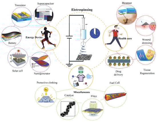 The evolution of electrospinning technology and the ability to fabricate tunable nanofibers have facilitated the development of advanced applications in the fields of health care, energy devices, the textile industry, environmental appliances, etc.
