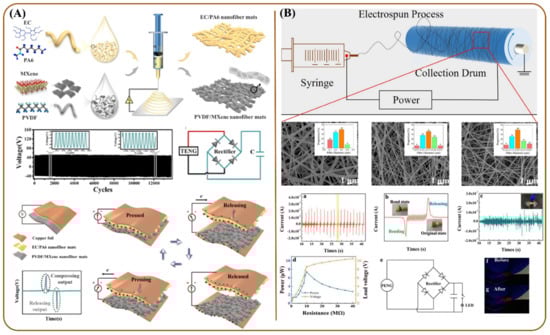 - Rana, S.M.S.; Rahman, M.T.; Salauddin, M.; Sharma, S.; Maharjan, P.; Bhatta, T.; Cho, H.; Park, C.; Park, J.Y. Electrospun PVDF-TrFE/MXene Nanofiber Mat-Based Triboelectric Nanogenerator for Smart Home Appliances. ACS Appl. Mater. Interfaces 2021, 13, 4955–4967. [Google Scholar] [CrossRef]