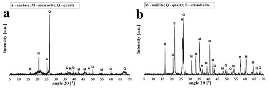 Figure 1. XRD patterns of the aluminosilicate Mefisto L05 (a) and chamotte (b).