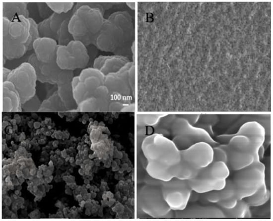 Scanning electron micrographs images of MIP; (A): bulk polymerization [], (B): in situ polymerization []], (C): precipitation polymerization [], (D): suspension polymerization [].