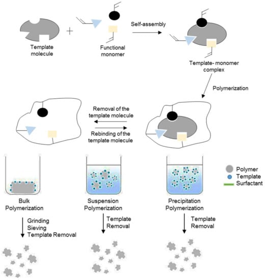 Various techniques are used to prepare MIPs for this purpose, including precipitation polymerization, bulk polymerization, suspension polymerization, and in situ polymerization. Each of these techniques have their advantages and disadvantages, of which are described in this section.