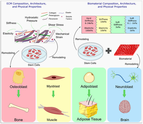 - Smith, L.R.; Cho, S.; Discher, D.E. Stem Cell Differentiation is Regulated by Extracellular Matrix Mechanics. Physiology 2018, 33, 16–25. [Google Scholar] [CrossRef]