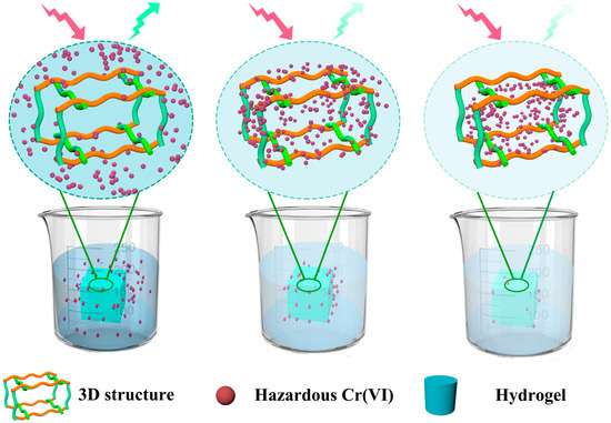 - Luo, Q.; Yuan, H.; Zhang, M.; Jiang, P.; Liu, M.; Xu, D.; Guo, X.; Wu, Y. A 3D porous fluorescent hydrogel based on amino-modified carbon dots with excellent sorption and sensing abilities for environmentally hazardous Cr(VI). J. Hazard. Mater. 2021, 401, 123432. [Google Scholar] [CrossRef] [PubMed]