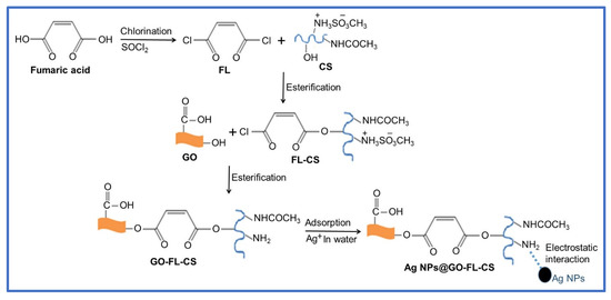 Schematic diagram for the fabrication of Ag NPs@GO-FL-CS.