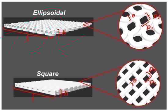 Two scaffolds with a square and ellipsoidal pore shape were designed using the Inventor Autodesk software (Adobe), and the digital designs are shown in Figure 1. The dimensions of 3D-designed scaffolds are listed in Table 1.
