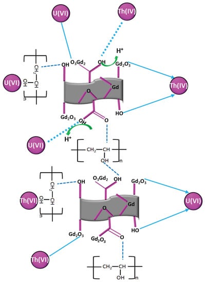 Possibility of U(VI) and Th(IV) adsorption mechanism on PGO–Gd.
